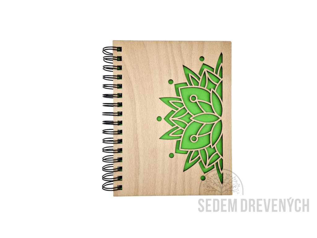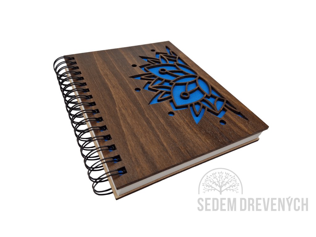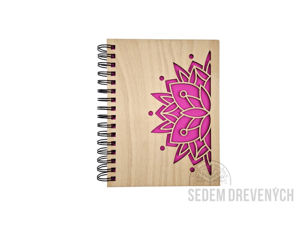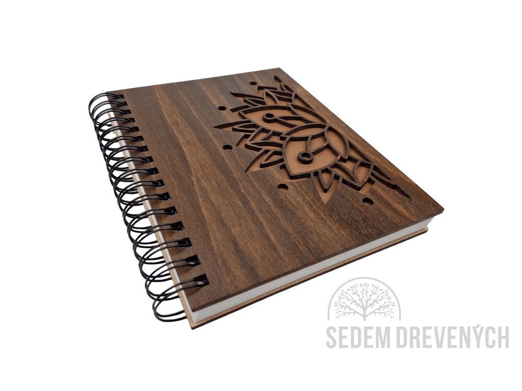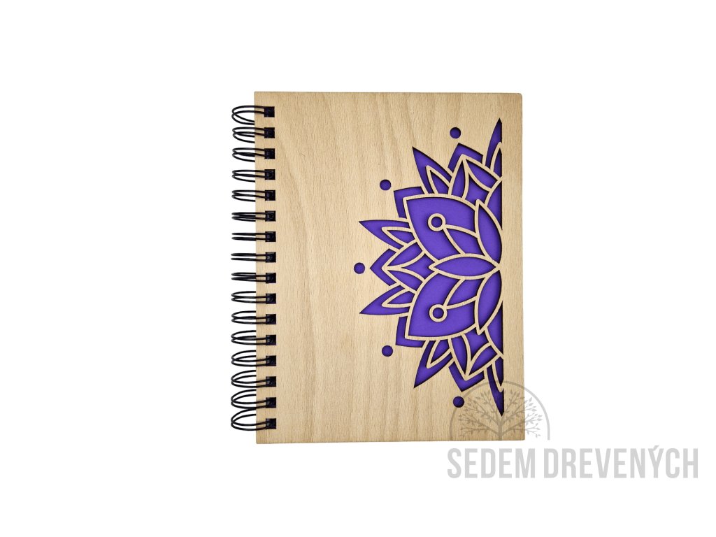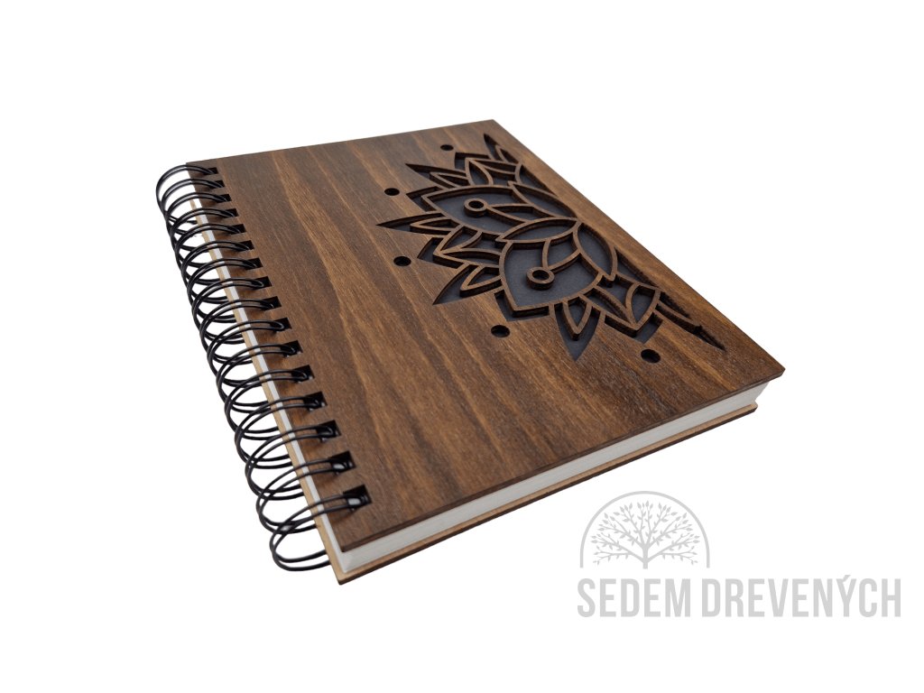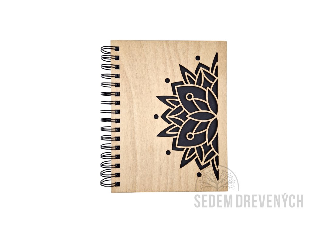 Krásny drevený zápisník z bukovej preglejky, s vyrezaným motívom MANDALA.