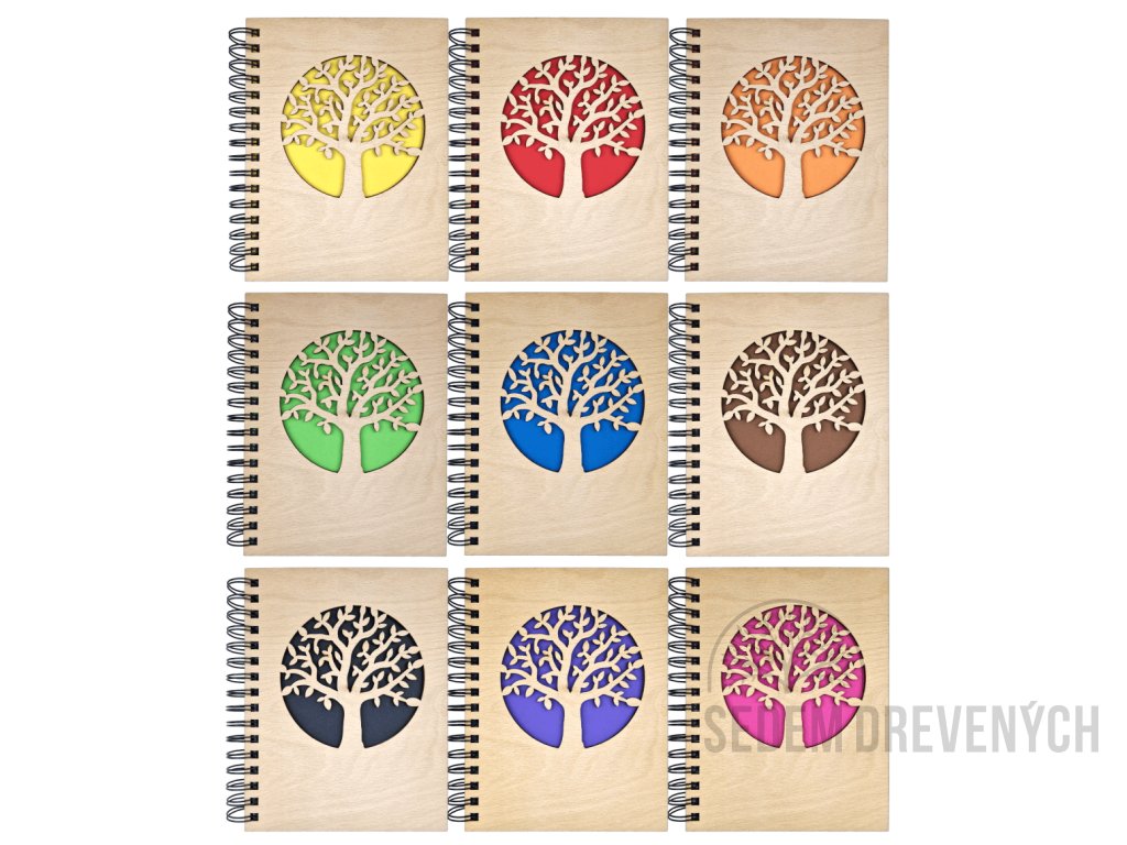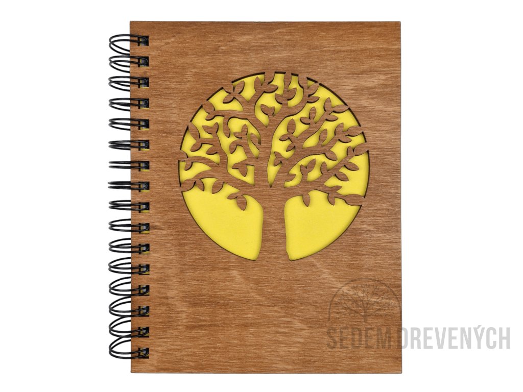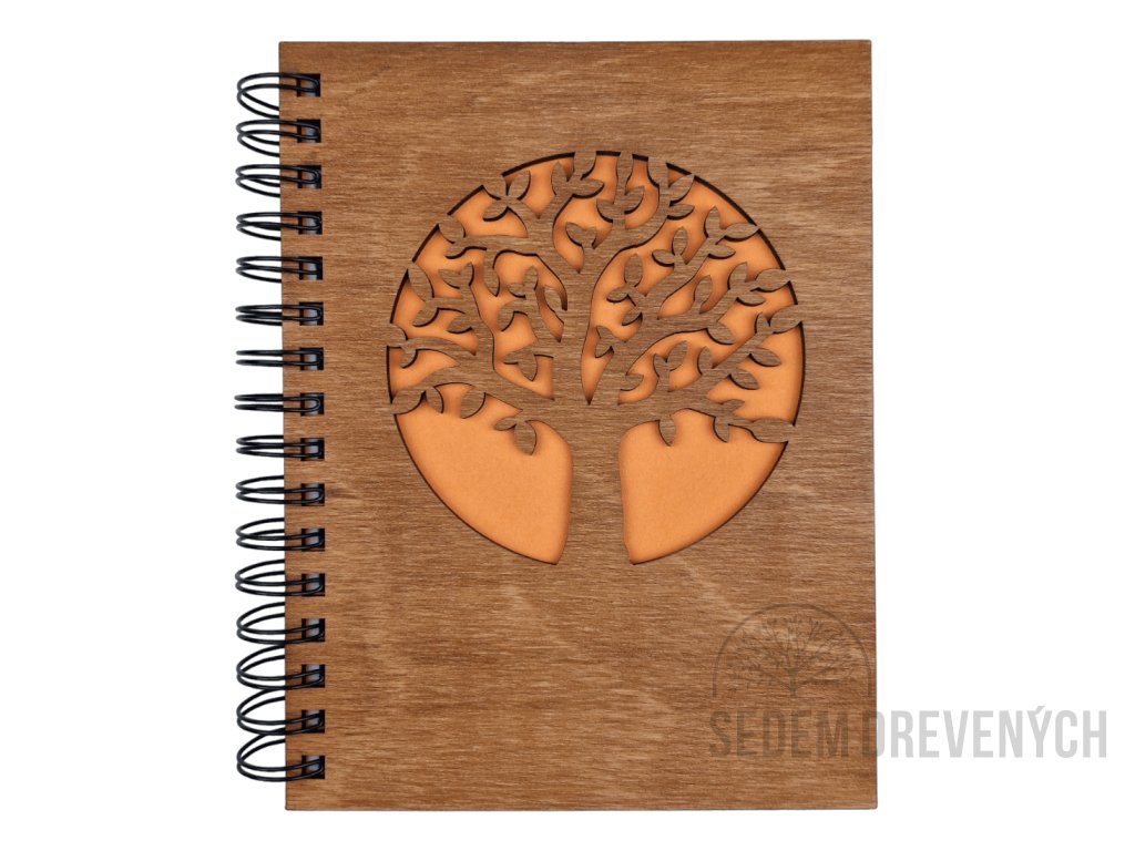 Krásny drevený zápisník z bukovej preglejky, s  vyrezaným motívom STROM ŽIVOTA.