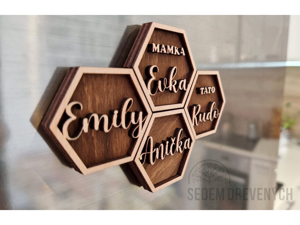 Krabička môže byť vyrobnená pre 4 až 8 kusov magnetiek a je možné na obale vygravírovať monogram s priezviskom rodiny alebo iným textom.