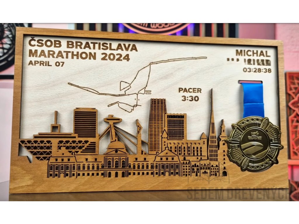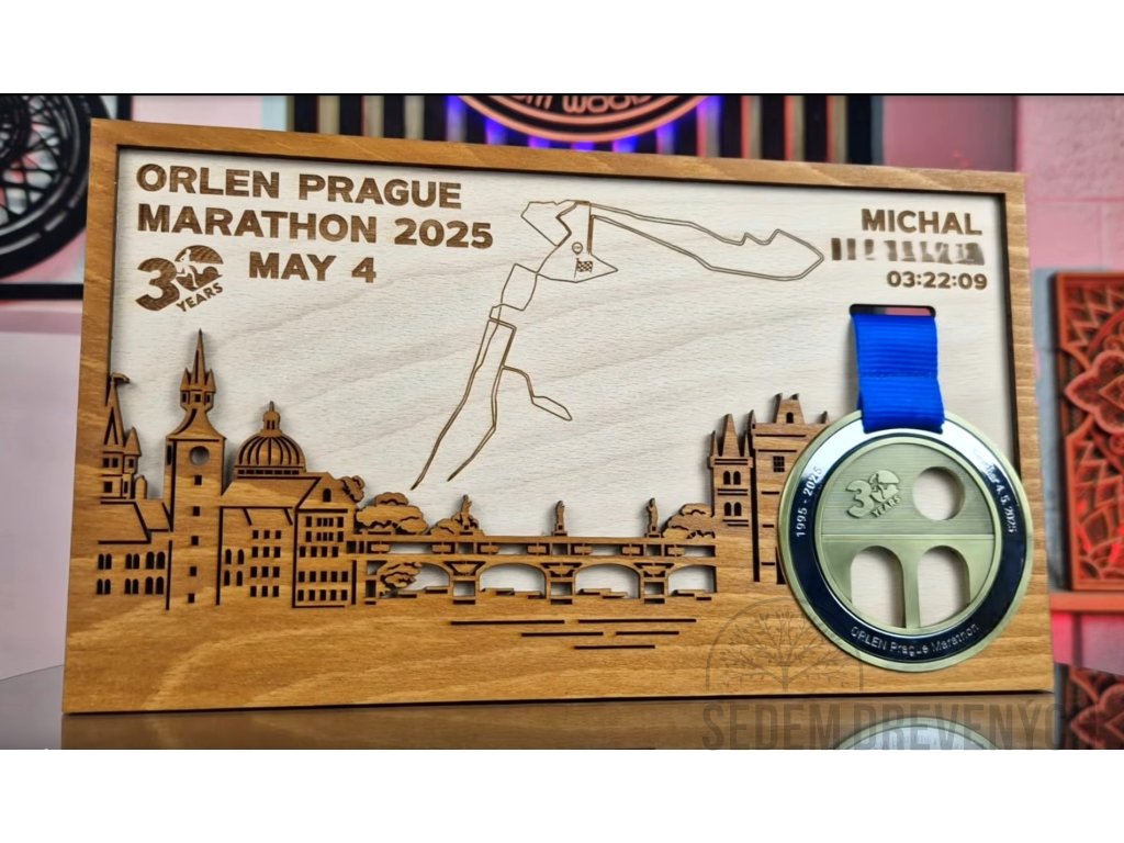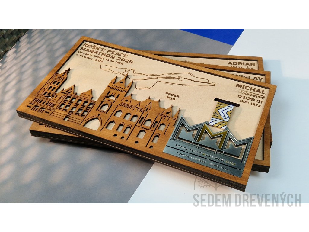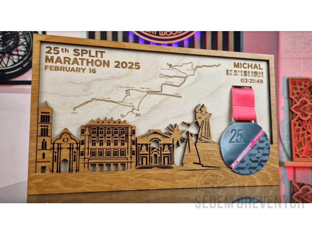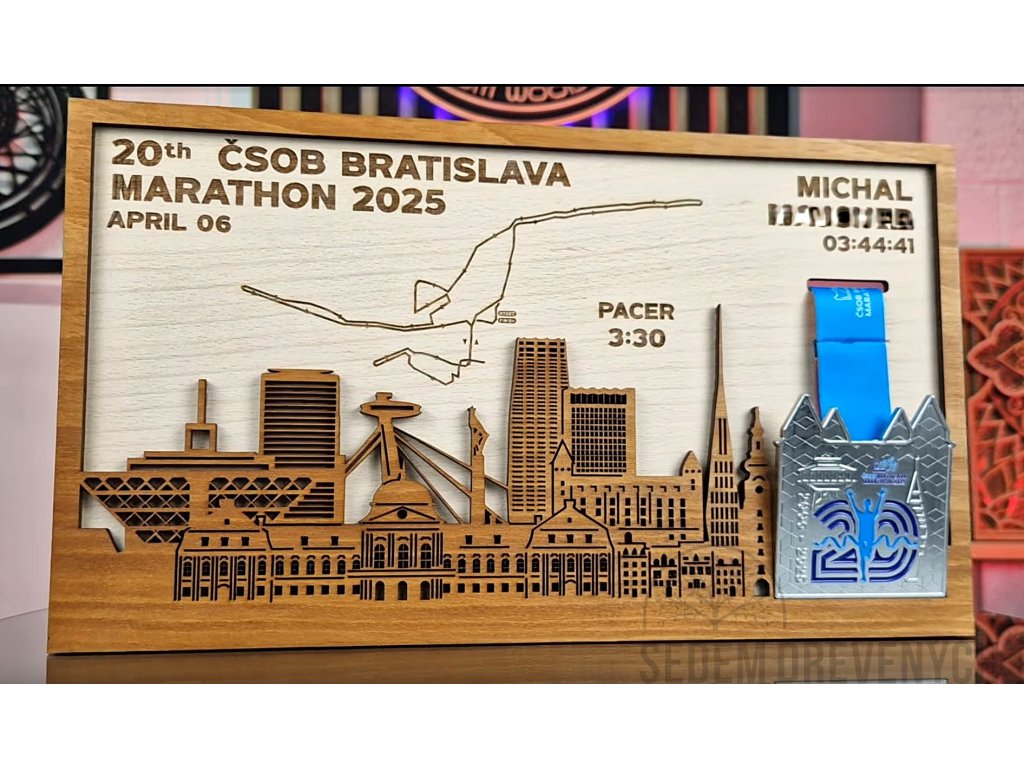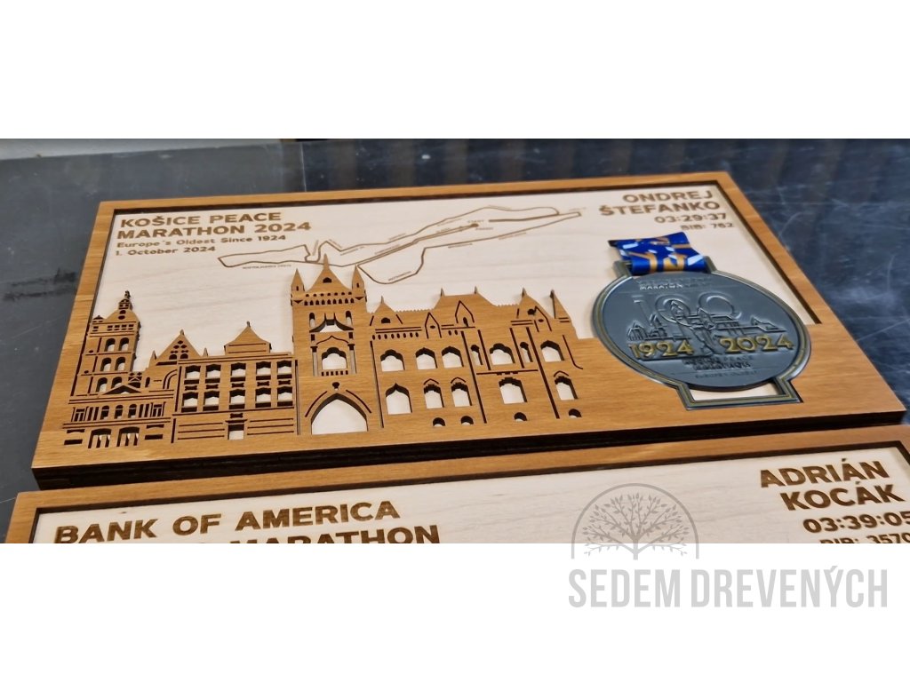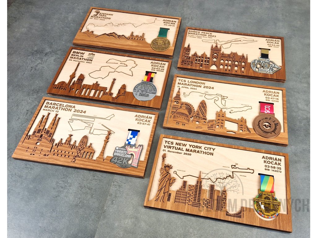 Vaša jedinečná, personalizovaná plaketa s Vašim menom, časom a štartovacím číslom, pre uloženie medajly z maratónu či inej súťaže. Vaša medajla do nej sadne ako uliata