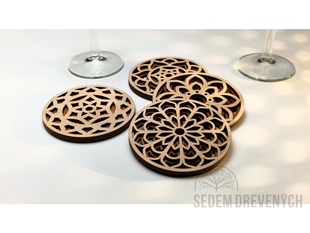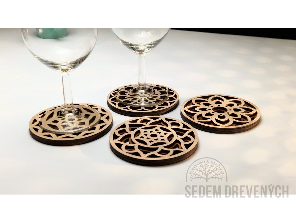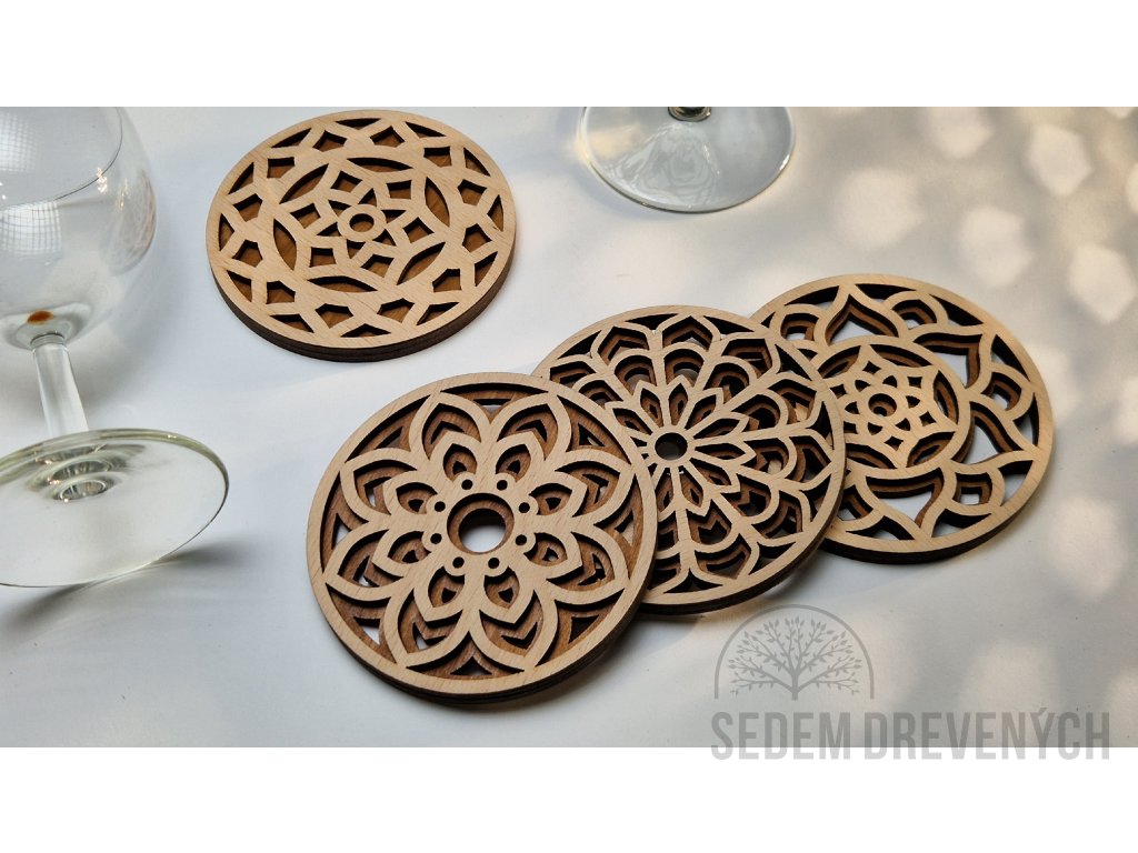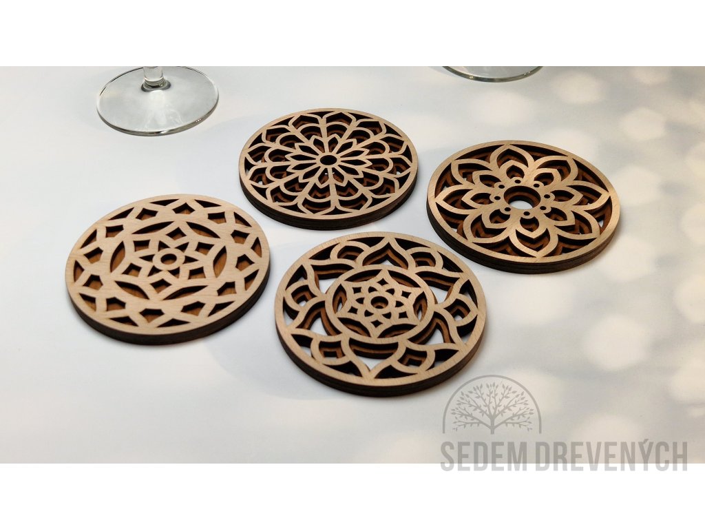 Set 4ks dvojvrstvových bukových podpivníkov s motívom mandaly.